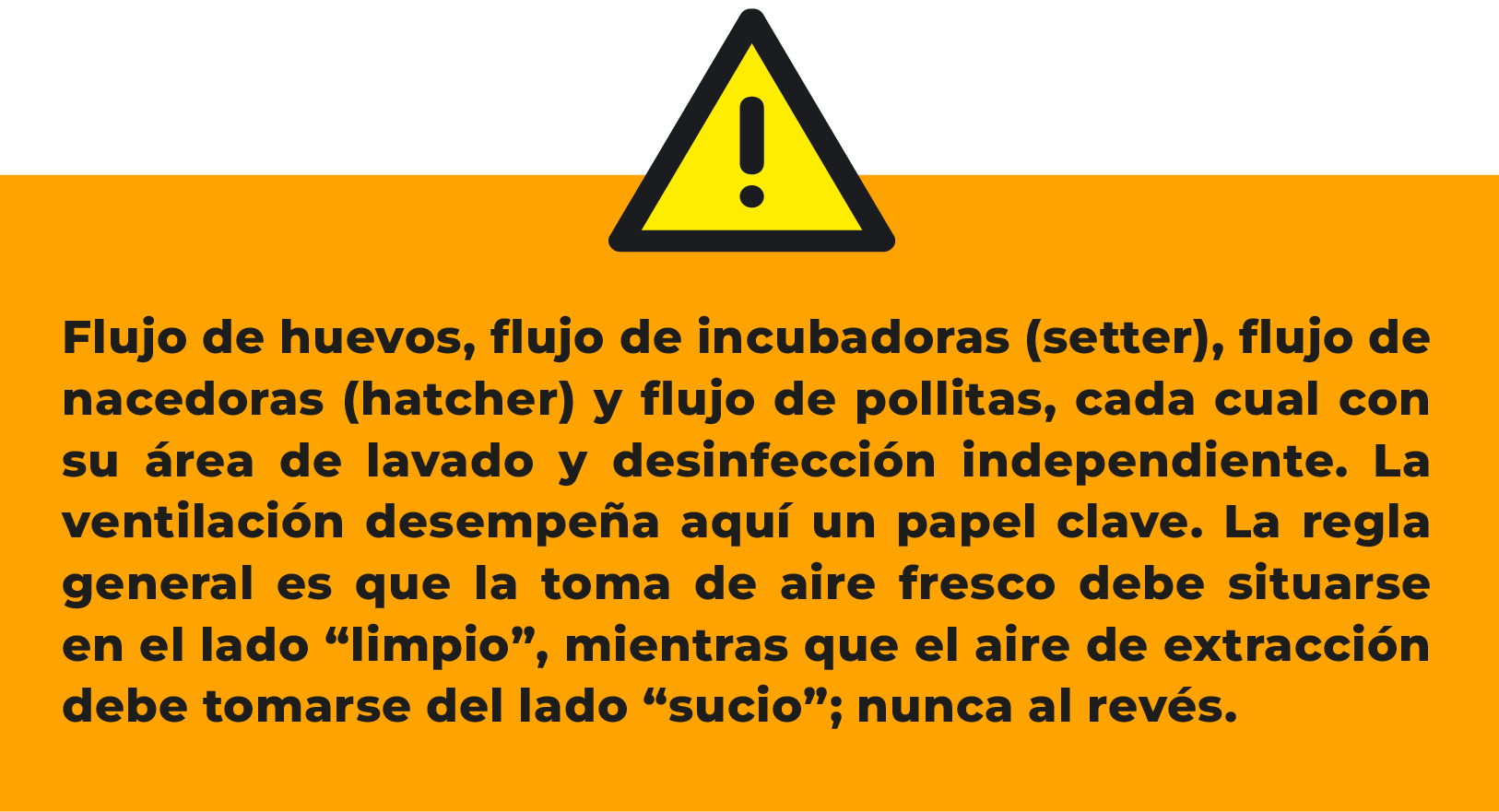 La mejor manera de prevenir la contaminación aérea en una incubadora comienza con una planificación cuidadosa durante la fase de construcción, orientando el edificio para aprovechar los vientos predominantes y siguiendo siempre el flujo del huevo a la pollita en consonancia con el flujo de aire exterior. Una vez construida la incubadora, aún pueden aplicarse medidas de protección, como barreras físicas, ya sean naturales (árboles) o artificiales (muros).Independientemente de la orientación de la incubadora, es esencial mantener al menos cuatro flujos separados y evitar la contaminación cruzada a toda costo: no solo para el personal, sino también para los equipos y especialmente para la ventilación.