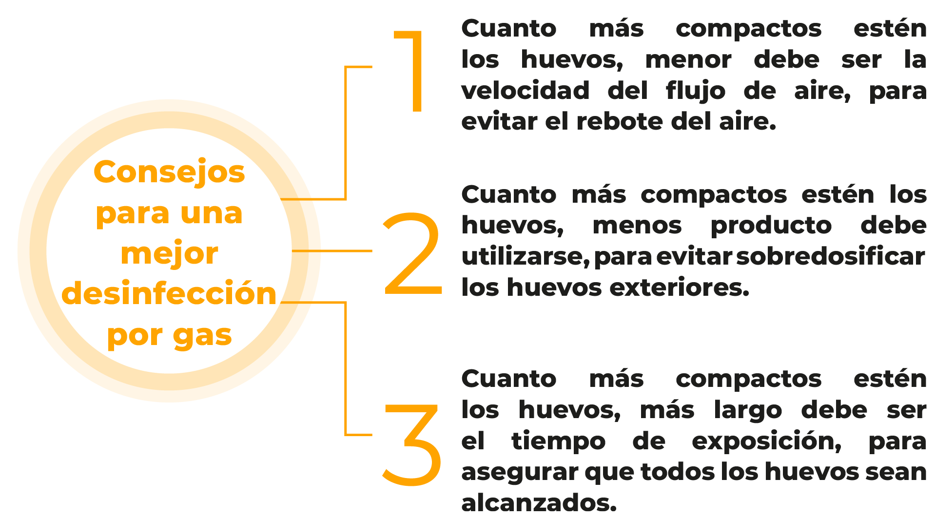 Al desinfectar con agentes gaseosos/volátiles (no solo huevos), es importante comprender los principios básicos de la difusión de gases. Para una difusión óptima, necesitamos la dosis correcta (concentración), la temperatura del aire y la ventilación (distribución). Una distribución rápida y uniforme del ingrediente activo es crucial, especialmente con aldehídos como el formaldehído, que puede causar mortalidad embrionaria super precoz si se gestiona mal.Cuando los huevos están demasiado juntos, el flujo de aire entre ellos se restringe. El uso de carros y bandejas de incubación (setter) permite un paso de aire más fácil, pero factores como la velocidad del flujo de aire, el tiempo de exposición y el área de contacto deben equilibrarse cuidadosamente.