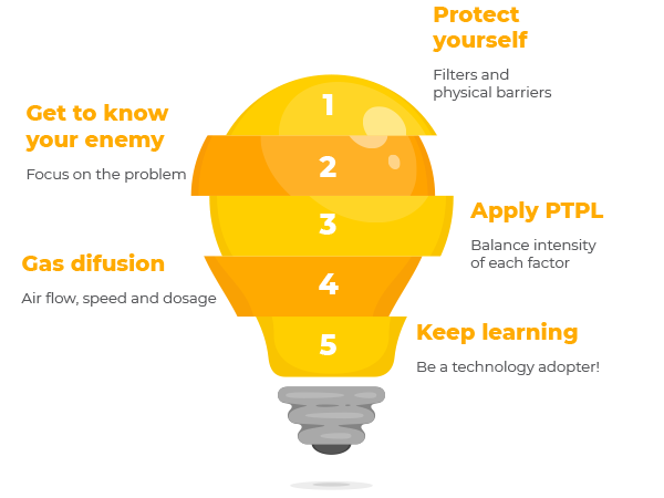 Keeping the hygiene status of a hatchery is like an ongoing battle. One of the most important things is to get to know your enemies i. e. to understand exactly which microorganisms you are fighting. In a hatchery, fungi (e.g., Aspergillus sp. and Cladosporium sp.) and spores are more resistant than gram-negative bacteria (E. coli, Pseudomonas, Proteus sp.) and gram-positive bacteria (Staphylococcus sp.).Identifying the specific microorganisms affecting your hatchery’s health is essential before deciding on control strategies.
