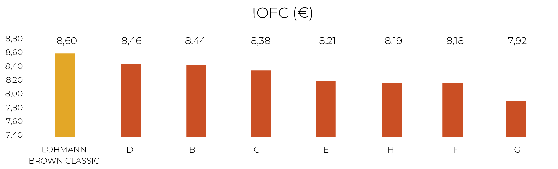 The LOHMANN BROWN-CLASSIC achieves a high IOFC through an optimal balance of performance and feed efficiency: